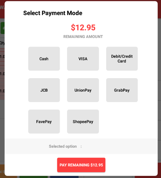 For example, a customer can start the transaction with cash and pay the remaining amount with a card.